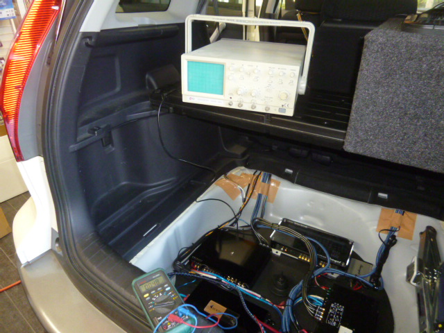アークオーディオ、デジタルアンプ6CHとキッカーソロバリックを施工! メインは、MM-1 保険でサービスしたP01も オリジナルテスターでデッキのピークを! ジークとオシロスコープも使用! …
