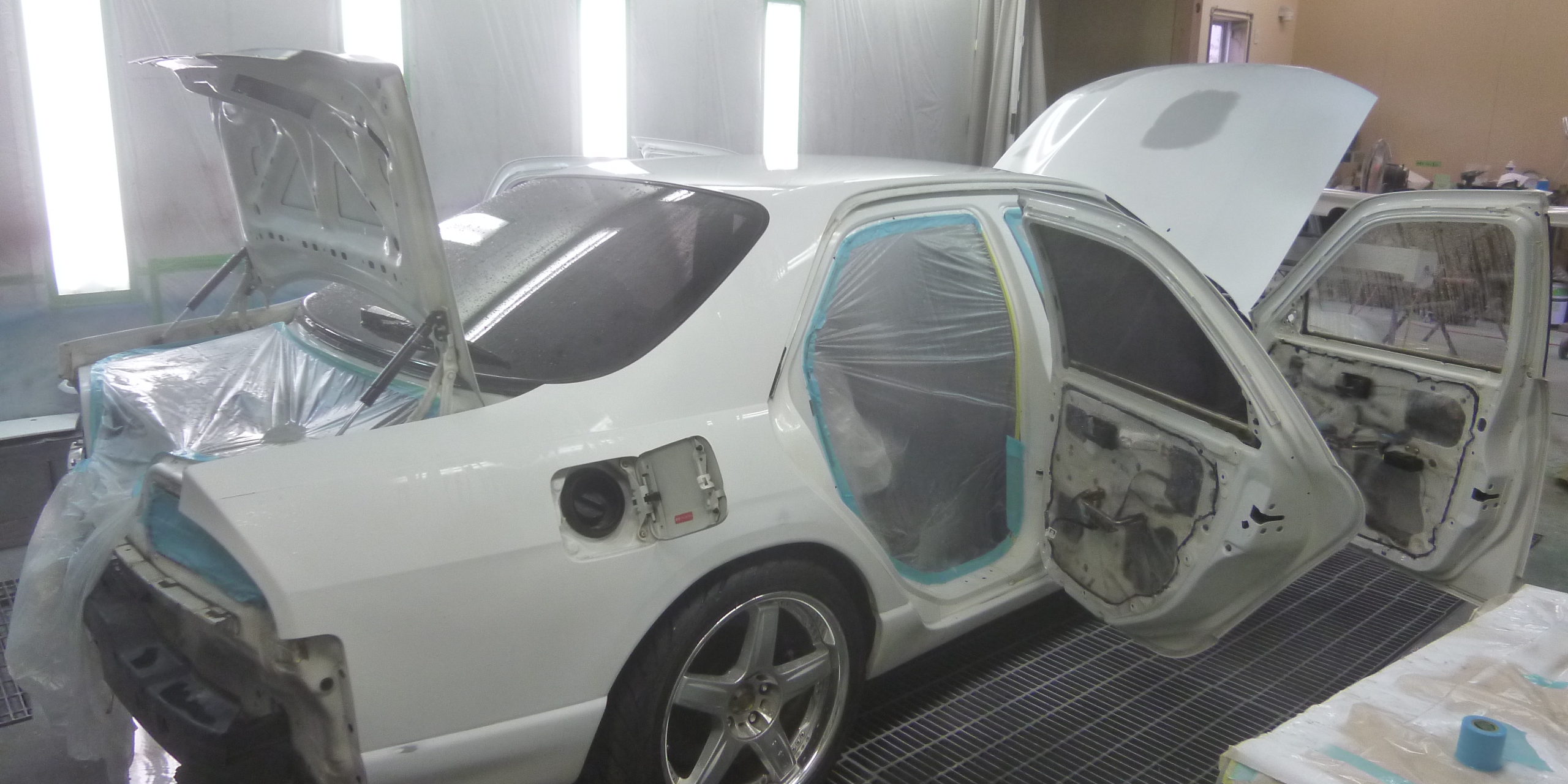 板金塗装ギャラリー R33インパル オリジナル白からパールホワイトに塗装します 各部マスキング ベースホワイト → パールコート → クリアーコート パーツ塗装 焼き乾燥後、ミガキ工程 各部組み付け インパルオリジナルオーバーフェンダーのゴムモールを汎用品で交換 リバースエンジニアリングのIMPULデカール貼り付け 完成編につづきます 埼玉県 浦和 大宮 さいたま 春日部 越谷 川口市 戸塚東 東川口 オールペン 全塗装はワイズオートデザインにご相談ください 軽自動車・普通車・ミニバン・外車・ドリ車・旧車・北米仕様 詳細に打ち合わせします Post navigationPreviousPrevious post:スカイラインR33インパル R33-IMPUL533S オールペン 全塗装 下処理編NextNext post:スカイラインR33インパル R33-IMPUL533S オールペン 全塗装 完成編Related posts三菱・デリカD:5 日焼け 塗装劣化修理2025年12月5日アウディ A5 Sライン 注文販売 各パーツ取り付け完成2025年10月22日アウディ A5 Sライン ホイール・マフラー交換2025年10月17日アウディ A5 Sライン グリル塗装・テール塗装・スプリング交換2025年10月14日ご成約ありがとうございます アウディ A5 Sライン 中古車 注文販売2025年10月12日アルトワークス オールペン 純正ツートン 完成編2025年9月25日