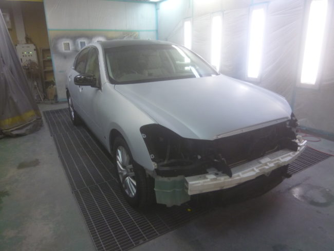 ニッサン フーガ Y50 オブシディアンブラックにオールペン完成です ブラックマスク仕様 中塗り 埼玉県 さいたま 浦和 大宮 岩槻 春日部 越谷 川口市 東川口…