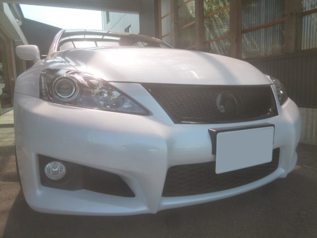 レクサス IS Fのグリルを つや有りブラックに、トランクエンブレムも つや有りブラックに塗装します 各パーツ分解、足付けします ルーバーとベゼルを つや有りブラックに塗装(クリアー仕上げ) …