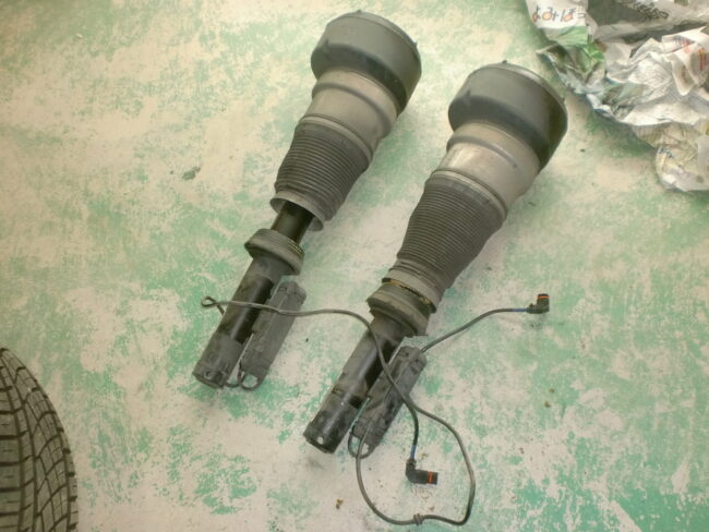 W221 80000Km フロントのエアサスが抜けてしまいました フロントの車高が全開に下がり走行不能に ハンドルを切るとフェンダーに当たってしまい、タイヤが回転するとツメがめく…
