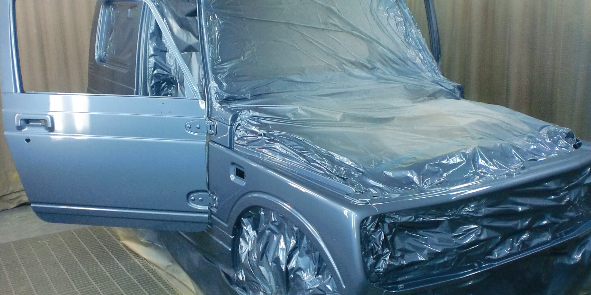 ジムニー ブルーエトワールメタリックに塗っていきます