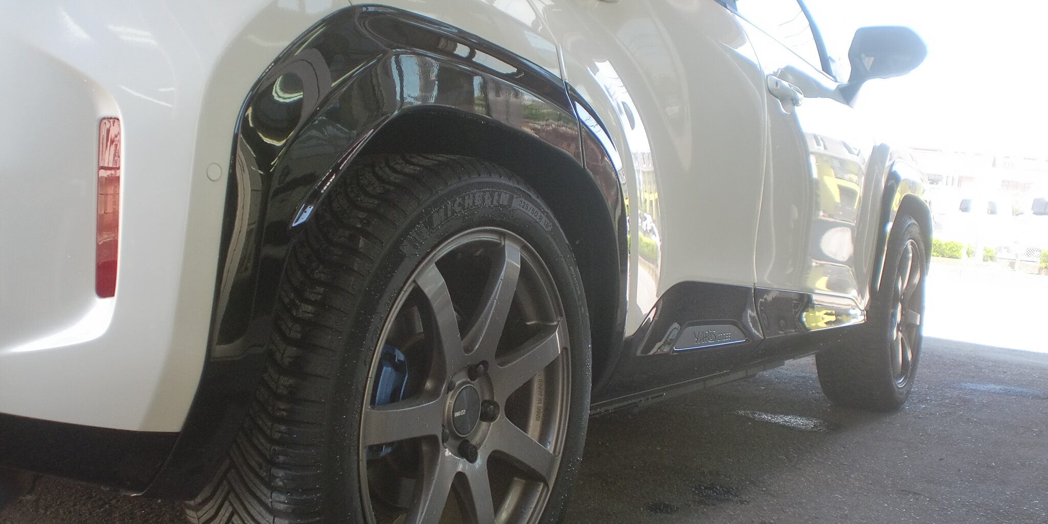 ヤリスクロス 樹脂パーツを つや有りブラック塗装します