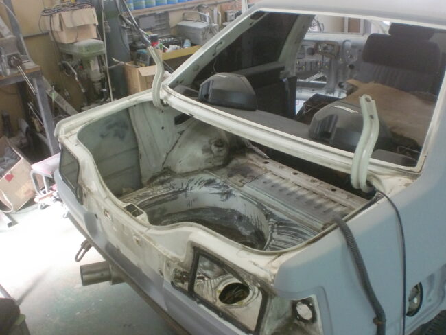 AE86 下処理 続き ピラー等の腐食を作業します ドア左右外し 腐食を限界まで削ります サビ…