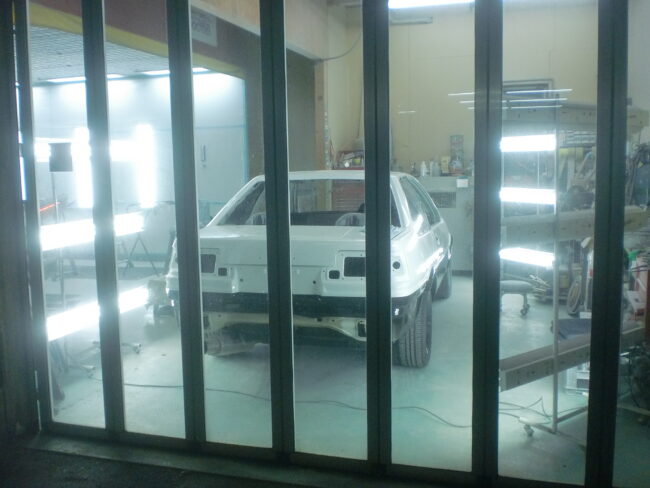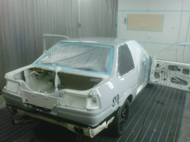 AE86 オールペン 組付け続きです 先に車体本体をミガキしておきます 車体本体ミガキ終わり (全組付け作業完了後に最終ミガキがあります)  …