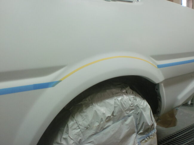 AE86 塗装 続き ベースカラーを乾燥させてから足付け ツートーン塗りのラインを計測しながら引いていきます マスキング …