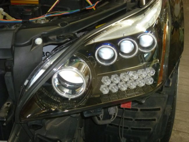 今回は、Aクラスです。 クリフォードセキュリティとLEDを施工! ばらしてみると、LEDに。 ミラーは、ヒヤヒヤです。 割れ…