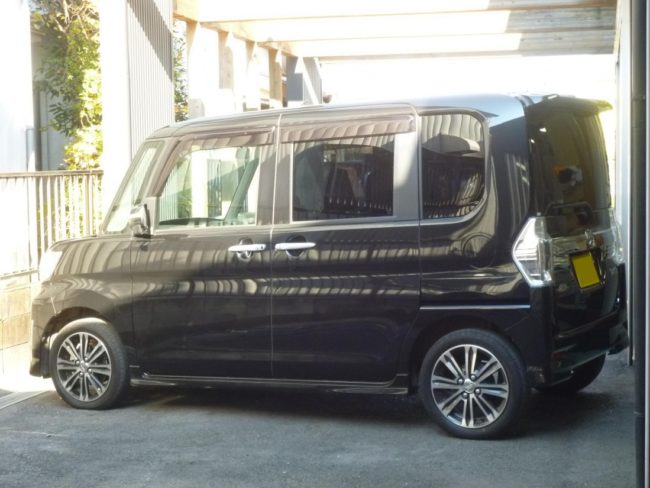 ダイハツ タント 他店で板金塗装した車両なのですが、色が合ってないのとミガキがひどいとの事で 当店で再塗装することになりました 色合わせをします。 他店塗装はパール分が著しく合っていない様子で…