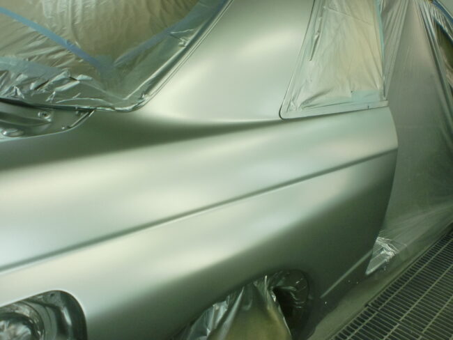 R32 GTR オールペン 組付け作業です まず車体をミガキします 車体ミガキ終了 (納車前ミガキは別にあります) 給油口はチリを合わせ…