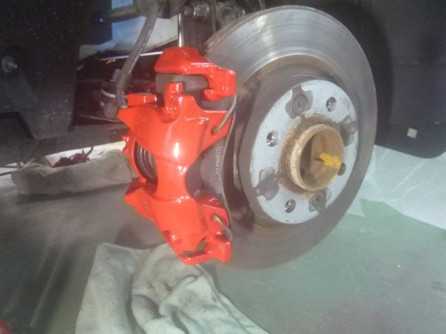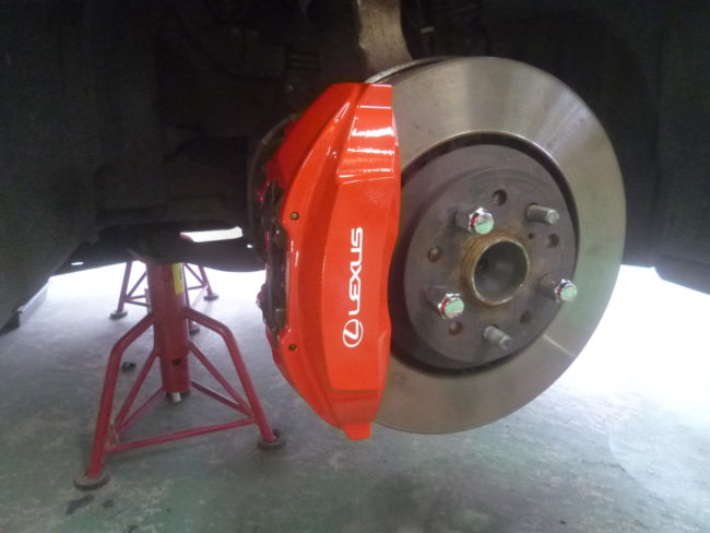 DetailsレクサスLSのキャリパーをレッドに塗装、LEXUSデカールを転写します 純正は鋳物無塗装 キャリパー脱着後、洗浄・足付け キャリパー塗装は「完全脱着コース」と「半脱着コース」があ…