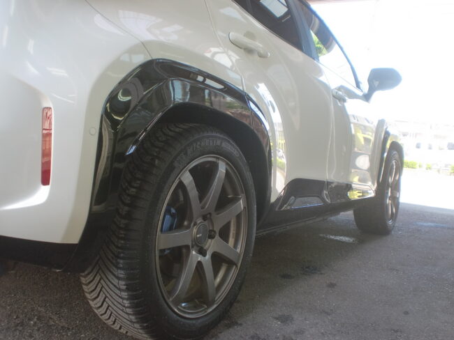 Detailsヤリスクロス 樹脂パーツを つや有りブラック塗装します フロントバンパー下・デイライトパーツ フェンダープロテクター・ドアプロテクター・アンダープロテクター(一部)…