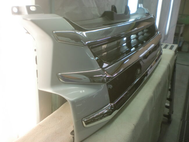 Detailsお客様持ち込みでハイエースの社外グリル ブラックとボディーカラー(1E7シルバー)の2色に塗り分けします 本体は素材色のままになっています 裏のパーツを取り外し &…