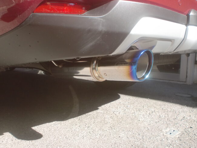 DetailsCLSのマフラー交換にディフューザーの取り付けです ノーマルマフラーは左右2本出し カットして外します 交換マフラーは左右4本出しになります 仮合わせ …